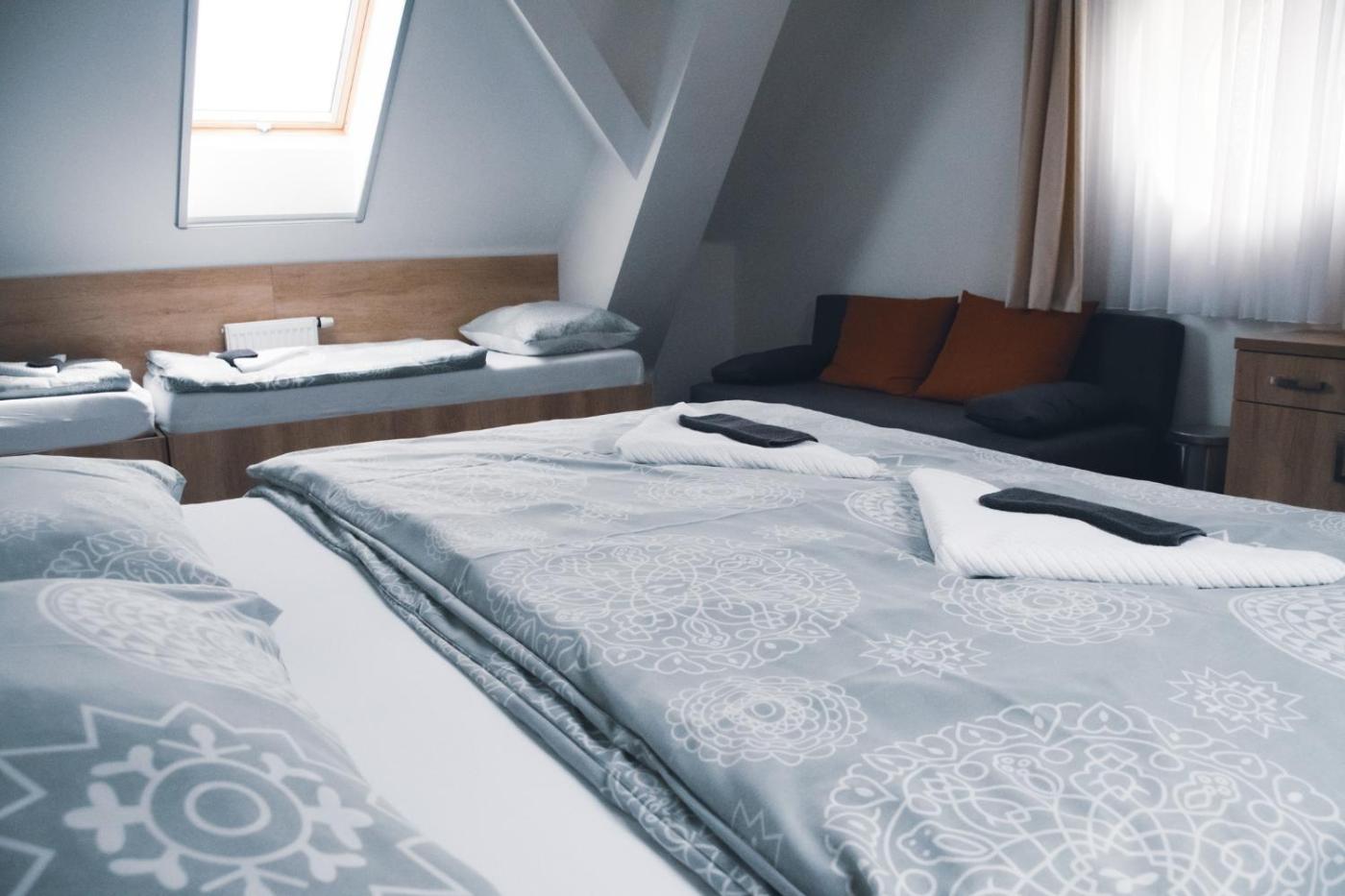 Quadruple Room with Private Bathroom. The quadruple room offers air conditioning and a wardrobe, as well as a private bathroom featuring a shower. The quadruple room features carpeted floors and provides an electric kettle, a sofa and heating. The unit offers 5 beds. ;