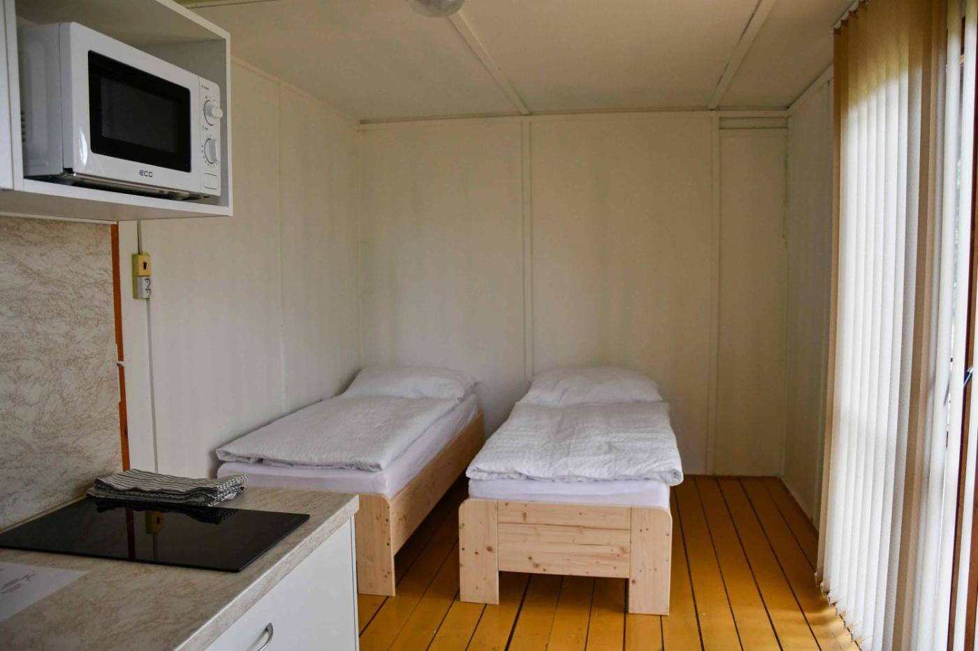 Two-Bedroom Chalet. Boasting 2 bedrooms, this chalet has 1 bathroom with a shower, a seating area and terraceyou can relax. Guests can make meals in the kitchenette that has a stovetop, a refrigerator, kitchenware and a microwave. Among the room amenities are a tea and coffee maker, a wardrobe, parquet floors as well as an outdoor dining area and garden views. The unit offers 4 beds. ;